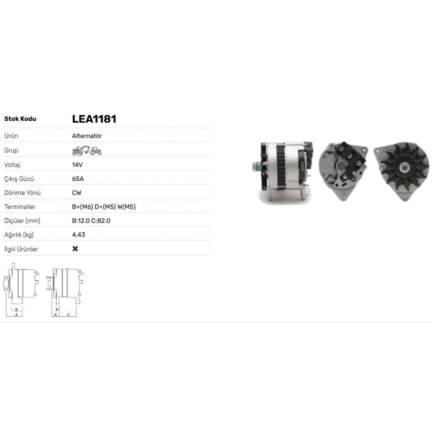 ALT DINAMO 12V 65A JCB CATERPILLAR PERKINS VALTRA