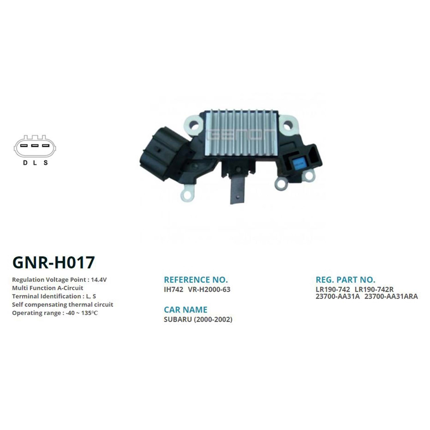 ALTERNATOR KONJEKTOR 12V SUBARU IMPREZA - LEGACY - OUTBACK - FORESTER (L, S)