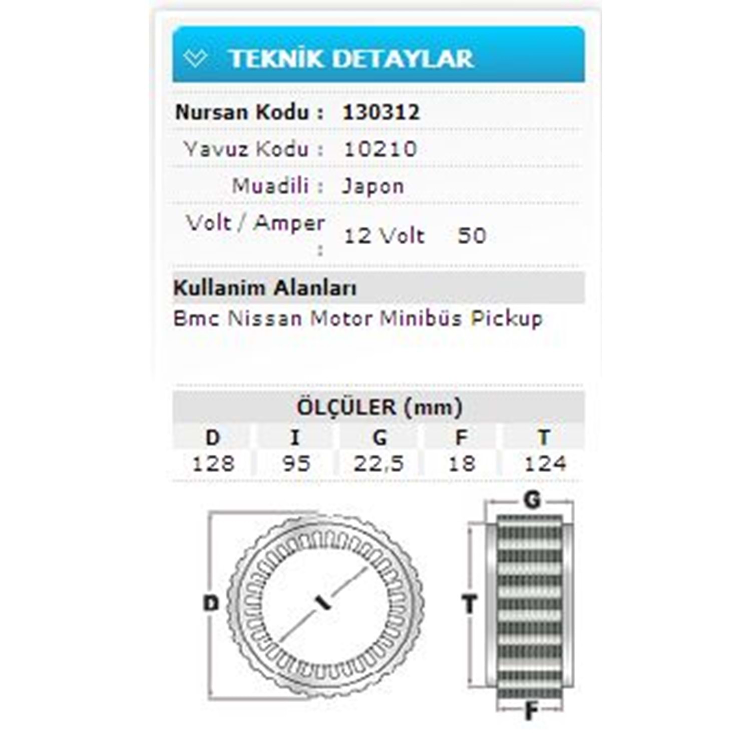 12V 50A BMC NISSAN MOTOR MİNİBÜS PİCKUP 10210