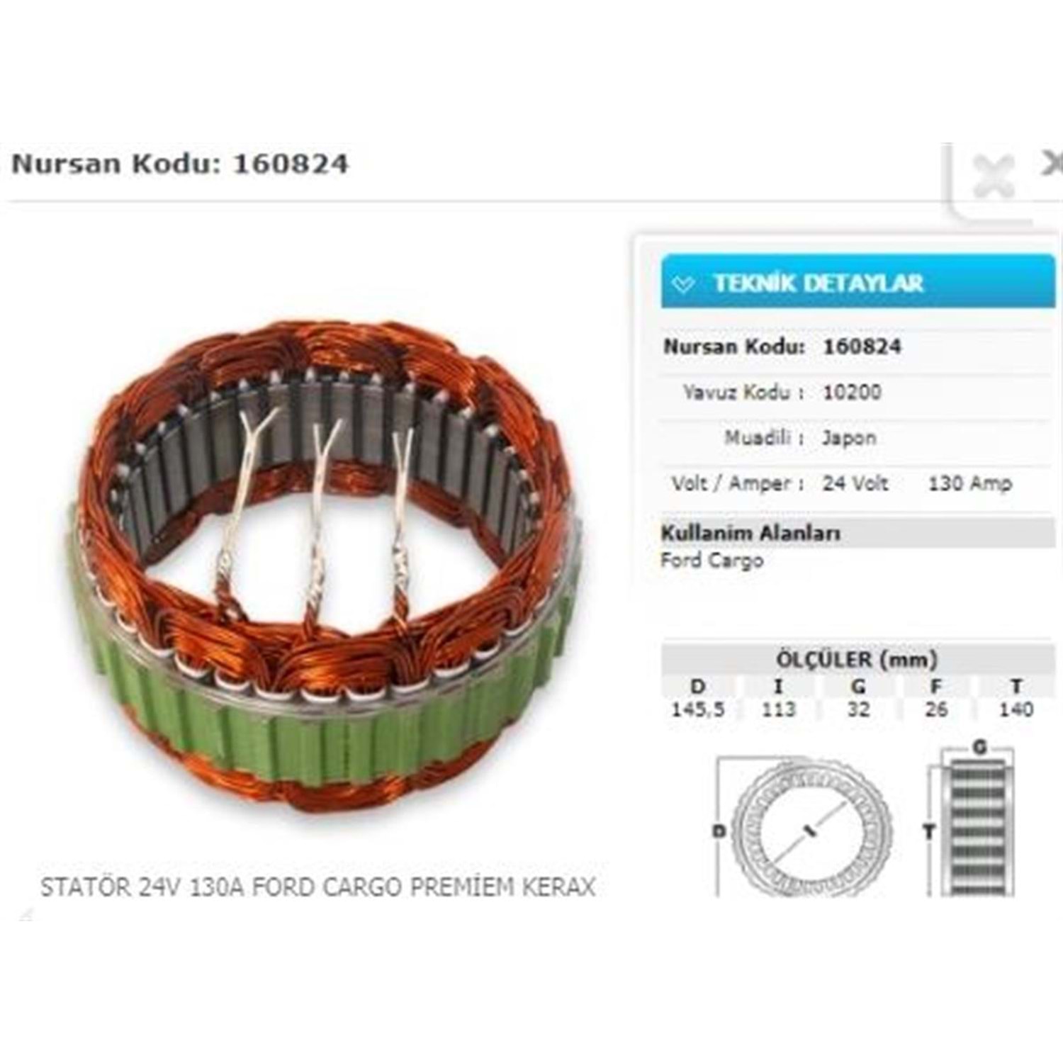 STATÖR 24V 130A FORD CARGO YM.MITSUBISHI