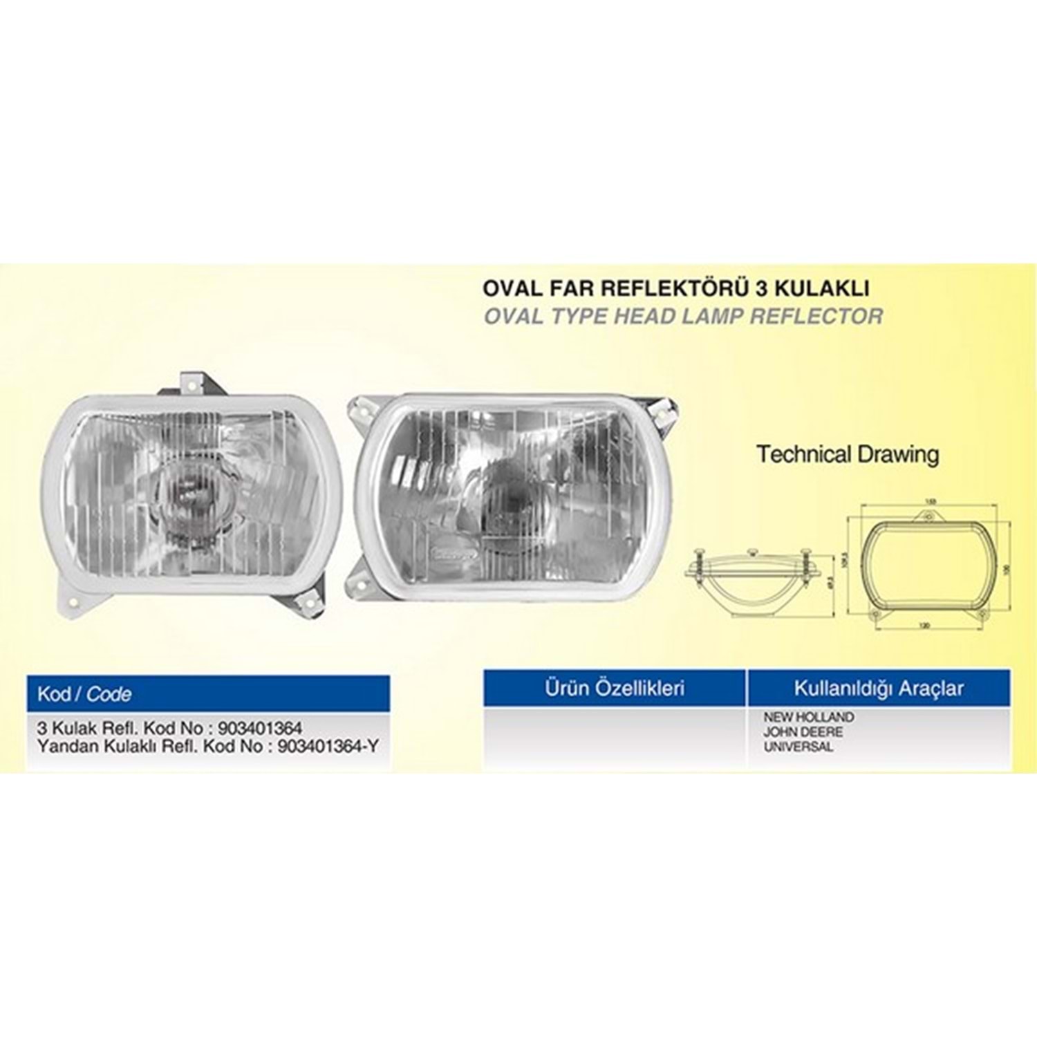 OVAL FAR REFLEKTÖRÜ 3 KULAKLI