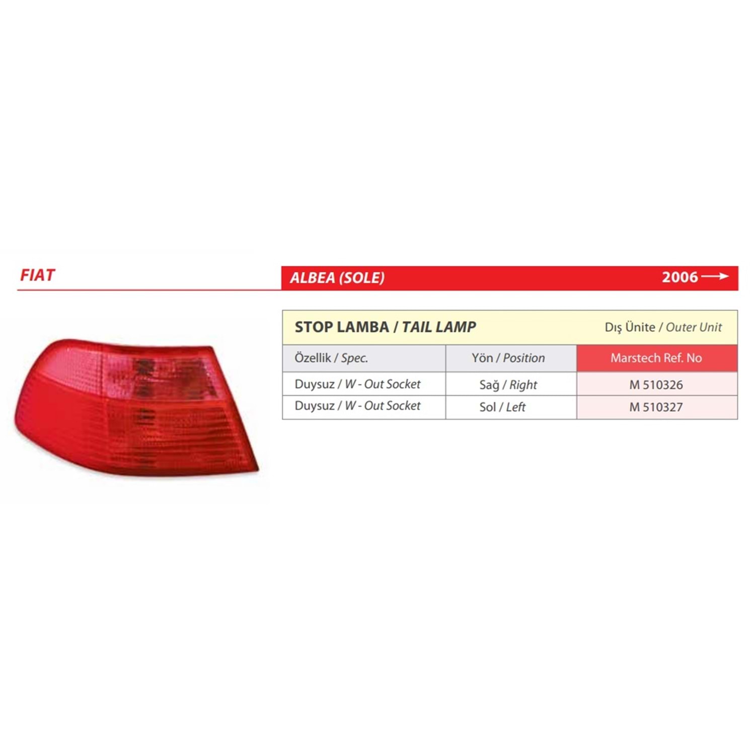 STOP LAMBA DUYSUZ DIS UNITE FIAT ALBEA SOLE 06 SOL