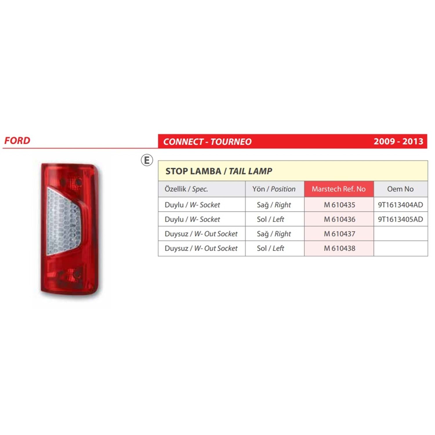 STOP LAMBA DUYSUZ FORD CONNECT-TOURNEO 09 R