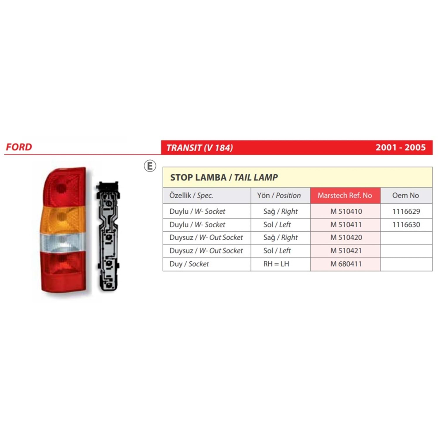 STOP LAMBA DUYSUZ FORD TRANSIT V184 01-05 SOL