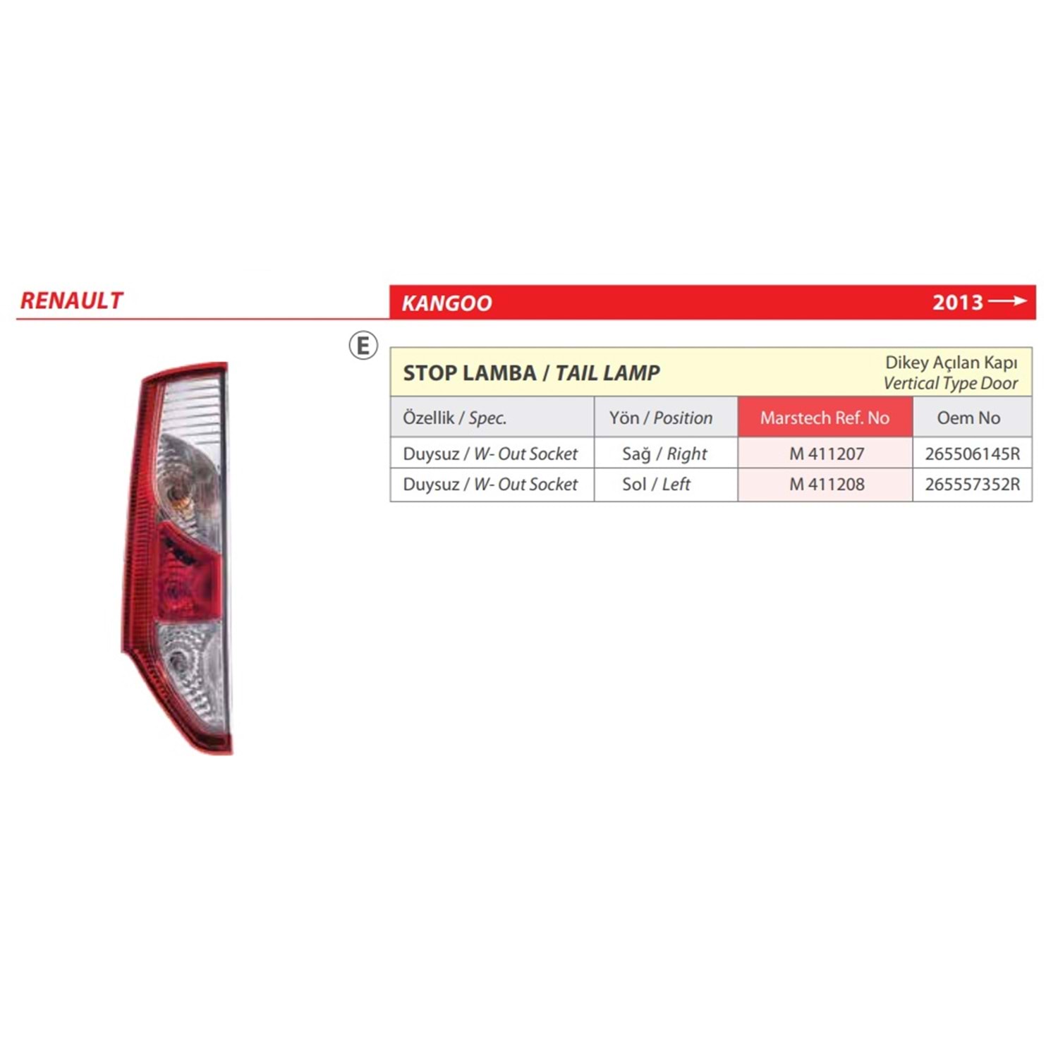STOP LAMBA DUYSUZ KANGOO SAĞ