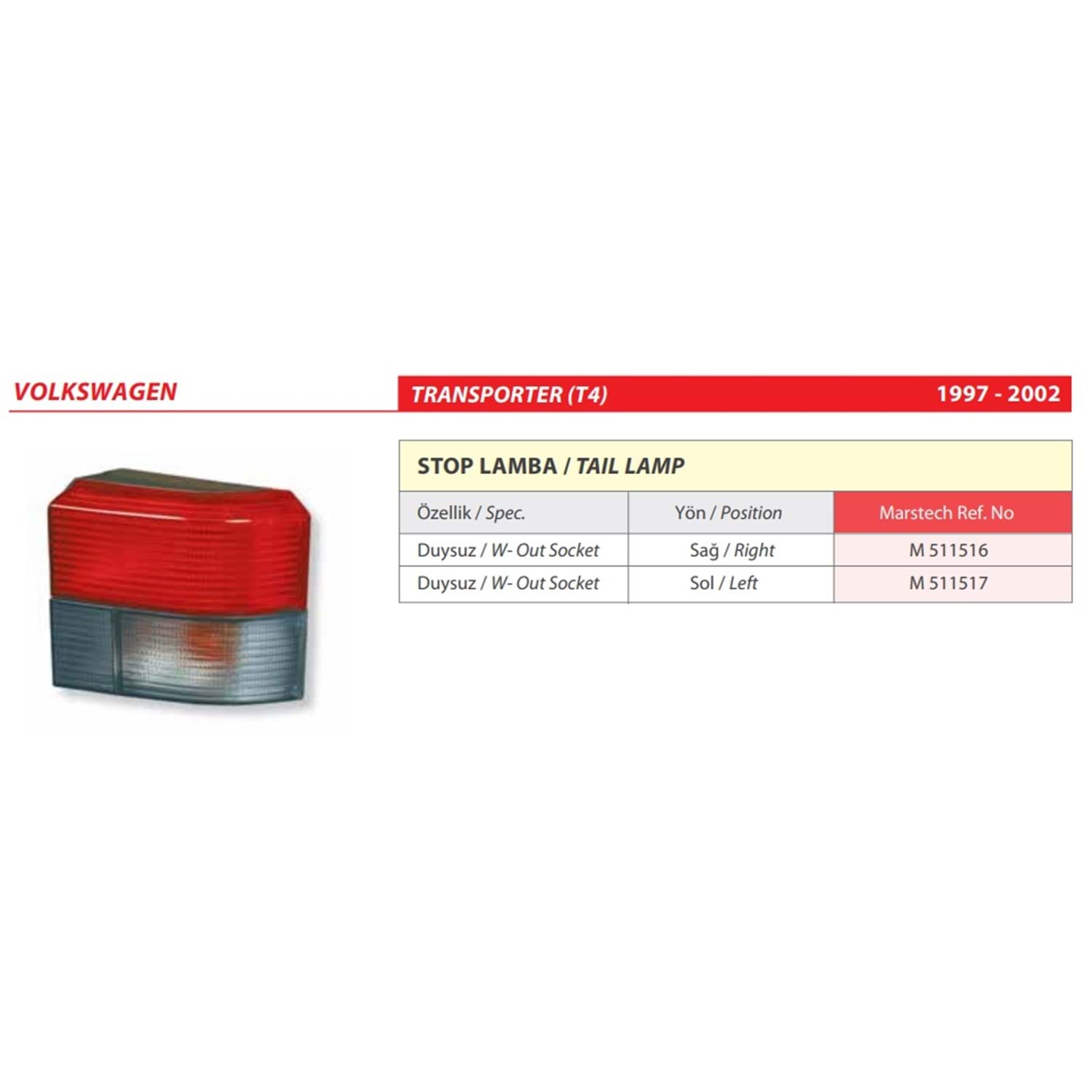 STOP LAMBA DUYSUZ VW TRANSPORTER T4 97-02 FUME SOL