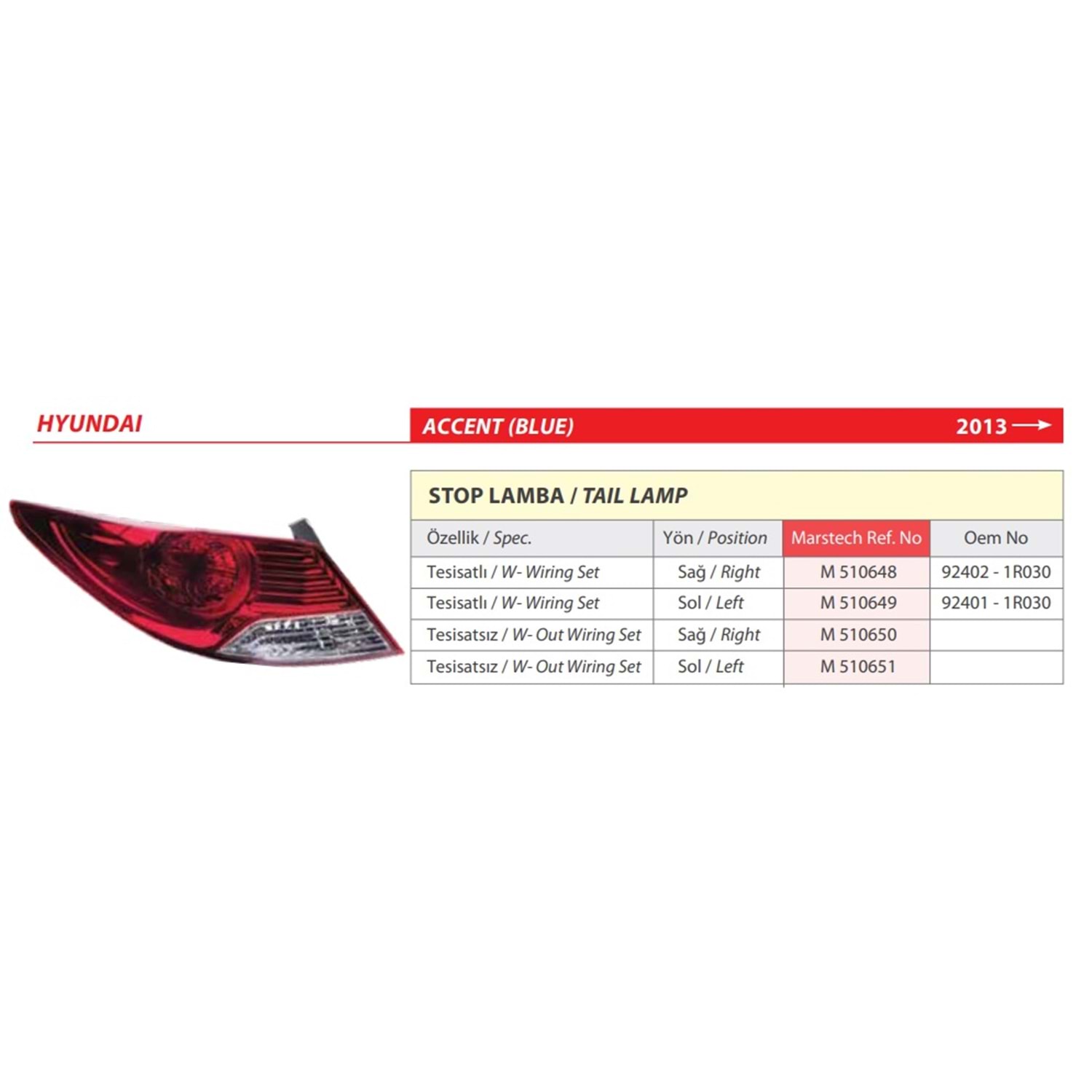 STOP LAMBASI SAG- ACCENT-BLUE 11>19 **DUYLU**