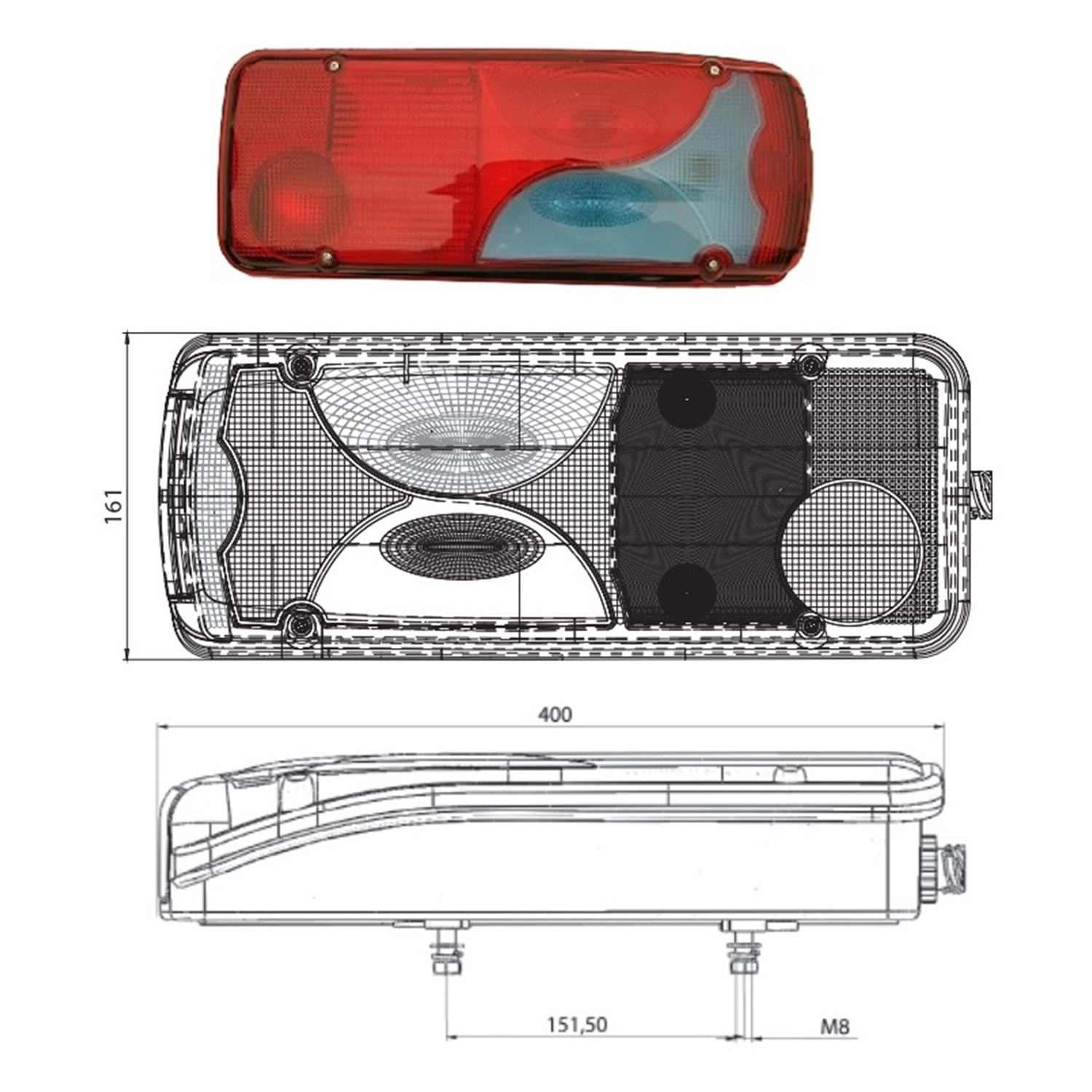 UNIVERSAL KAMYON DORSE STOP LAMBASI SOKETLİ SAĞ