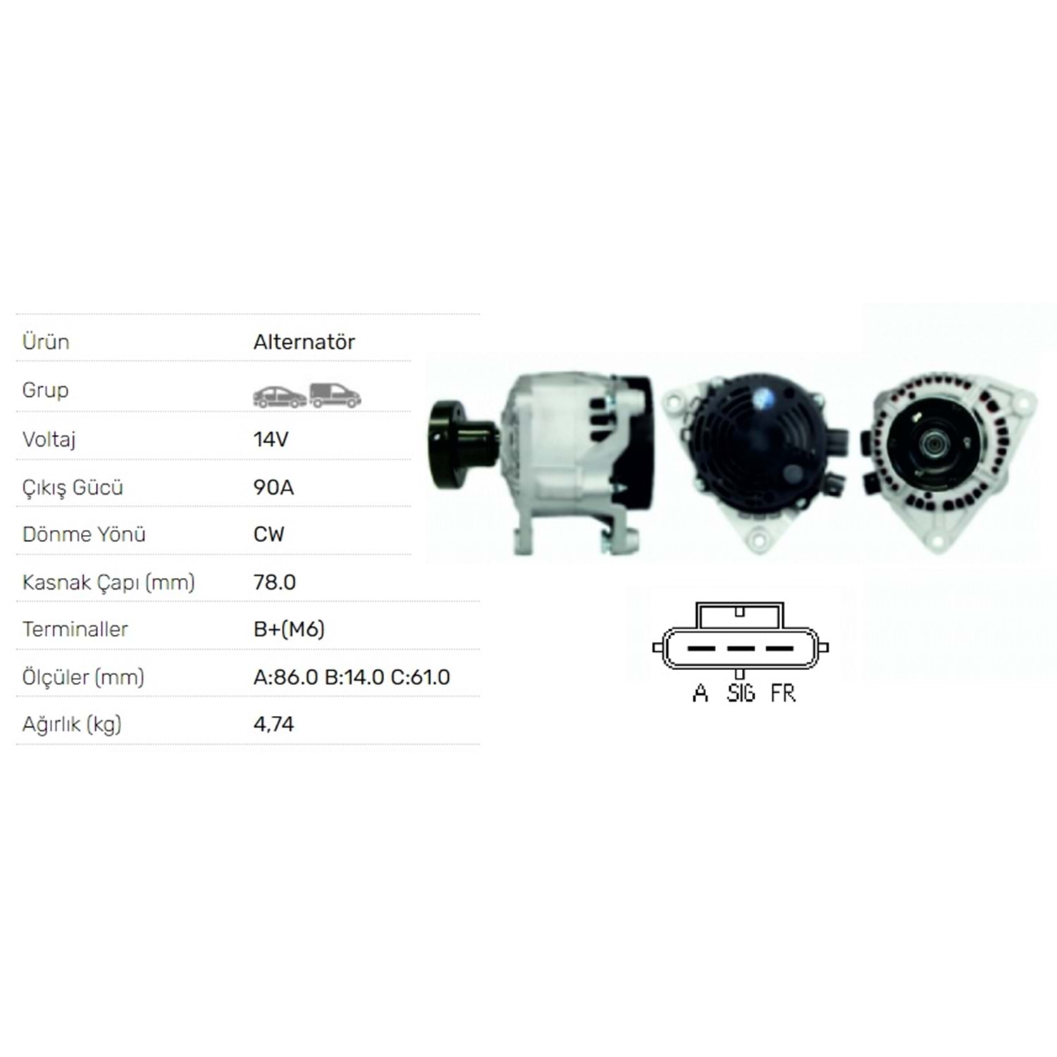 ALT.DIN. 12V.90A MARELLI FOCUS 1,8 TDCI 2001->