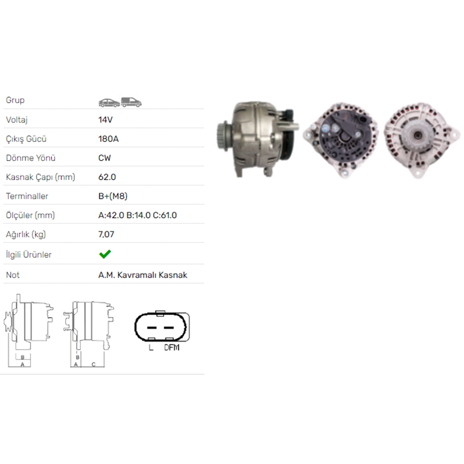 ALT DINAMO 12V 180A VW MULTIVAN 2.0 TDI