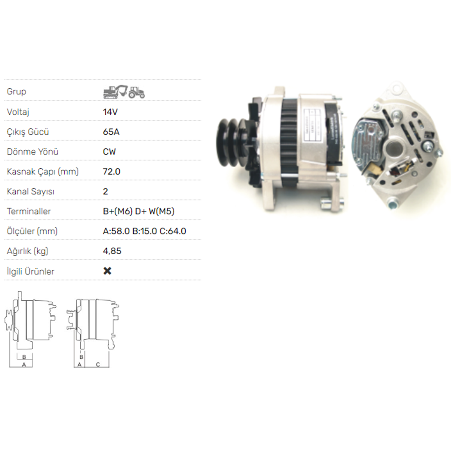 ALT DINAMO 12V 65A TUMOSAN
