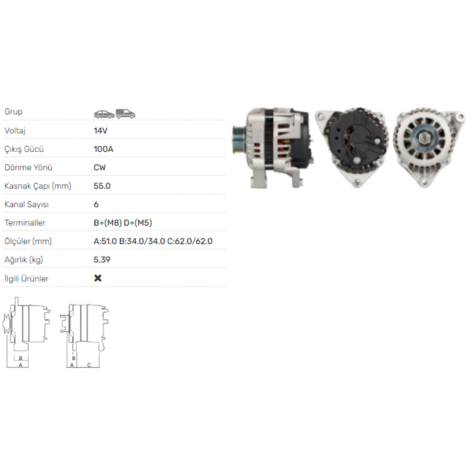 ALT DINAMO 14V 100A OPEL 2.0 2,5 DIESEL ALT-1422