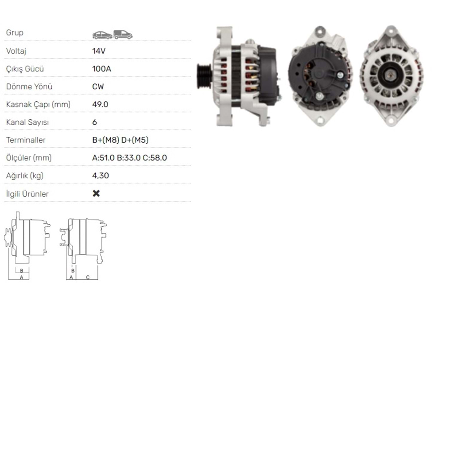 ALT DINAMO 14V 100A OPEL ASTRA A 1.8I 2.0I CALIBRA 2.0I 4X4 FRONTERA A ALT-1407