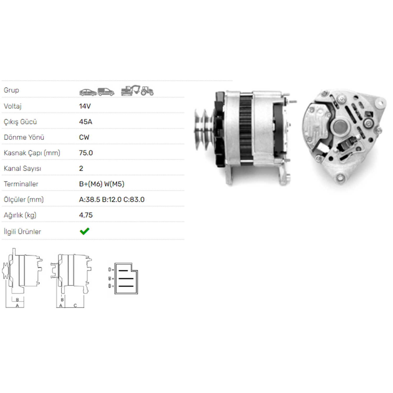 ALT DINAMO 14V 45A CASE JCB LAND ROVER