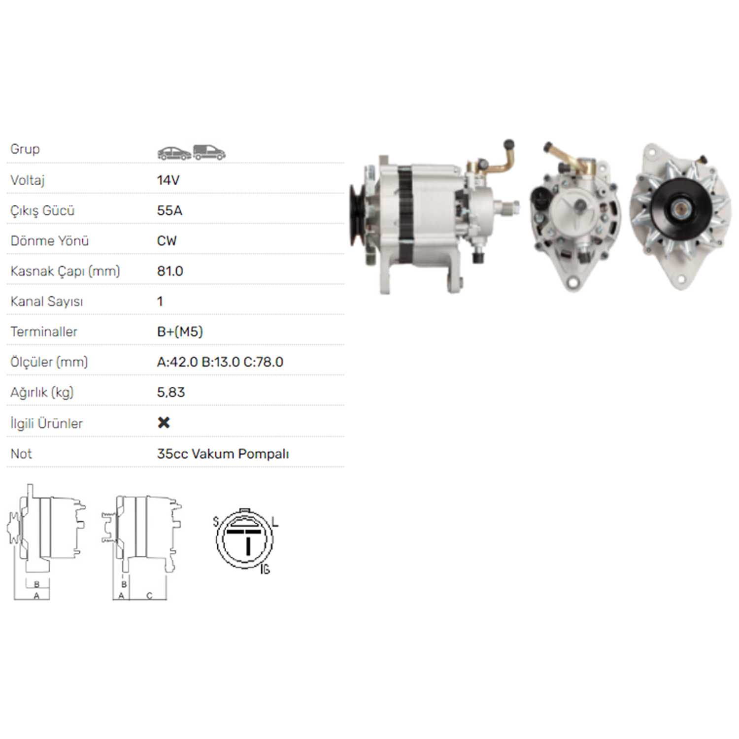 ALT DINAMO 14V 55A V.P. BEDFORD MIDI 2.2 DIESEL