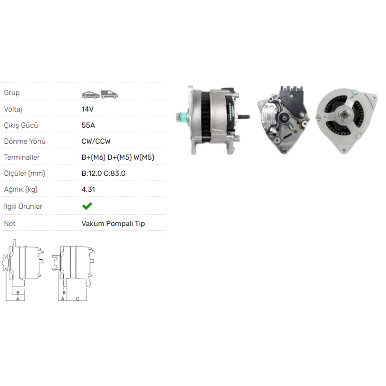 ALT DINAMO 14V 55A V.P. FORD TRANSIT III