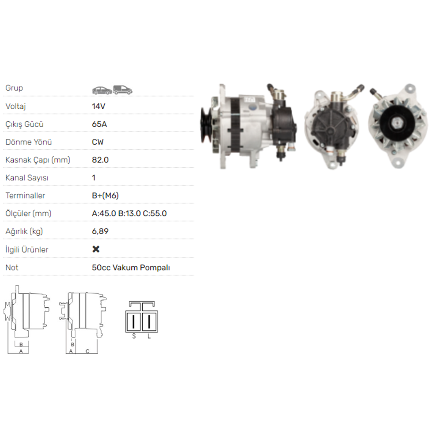 ALT DINAMO 14V 65A V.P. MITSUBISHI L300 2,5D 2,5TD