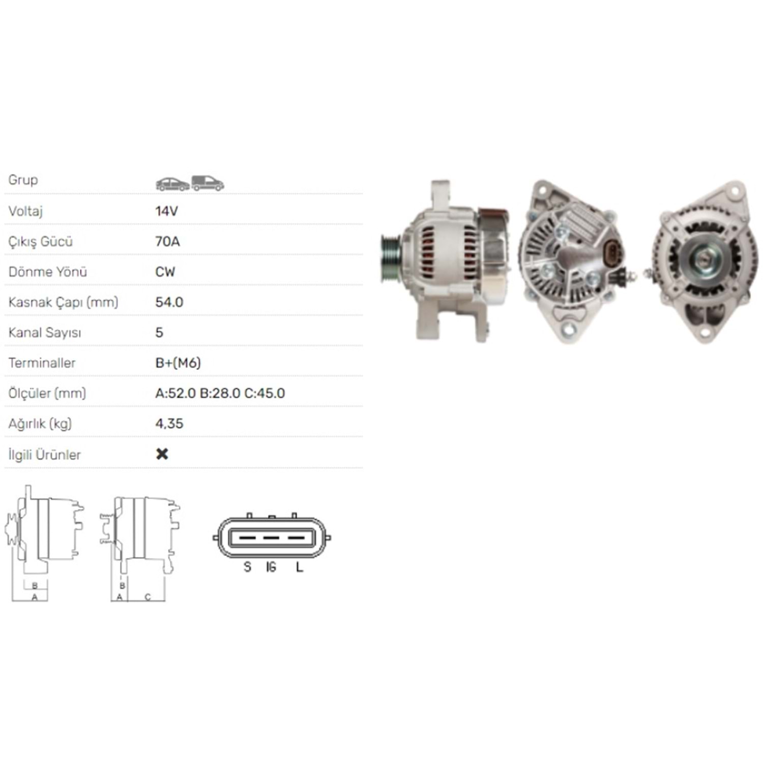 ALT DINAMO 14V 70A TOYOTA CARINA E 1,5I ESTATE KOMBI 1,6I ALT-5041