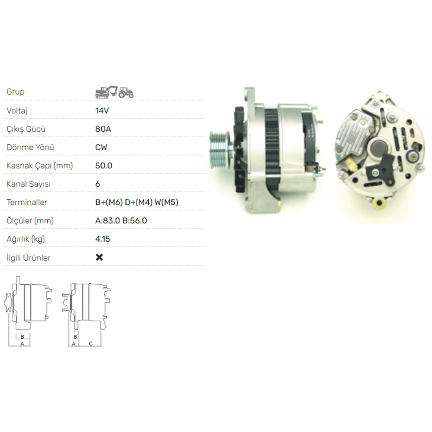 ALT DINAMO 14V 80A RENAULT ENDUSTRIYEL