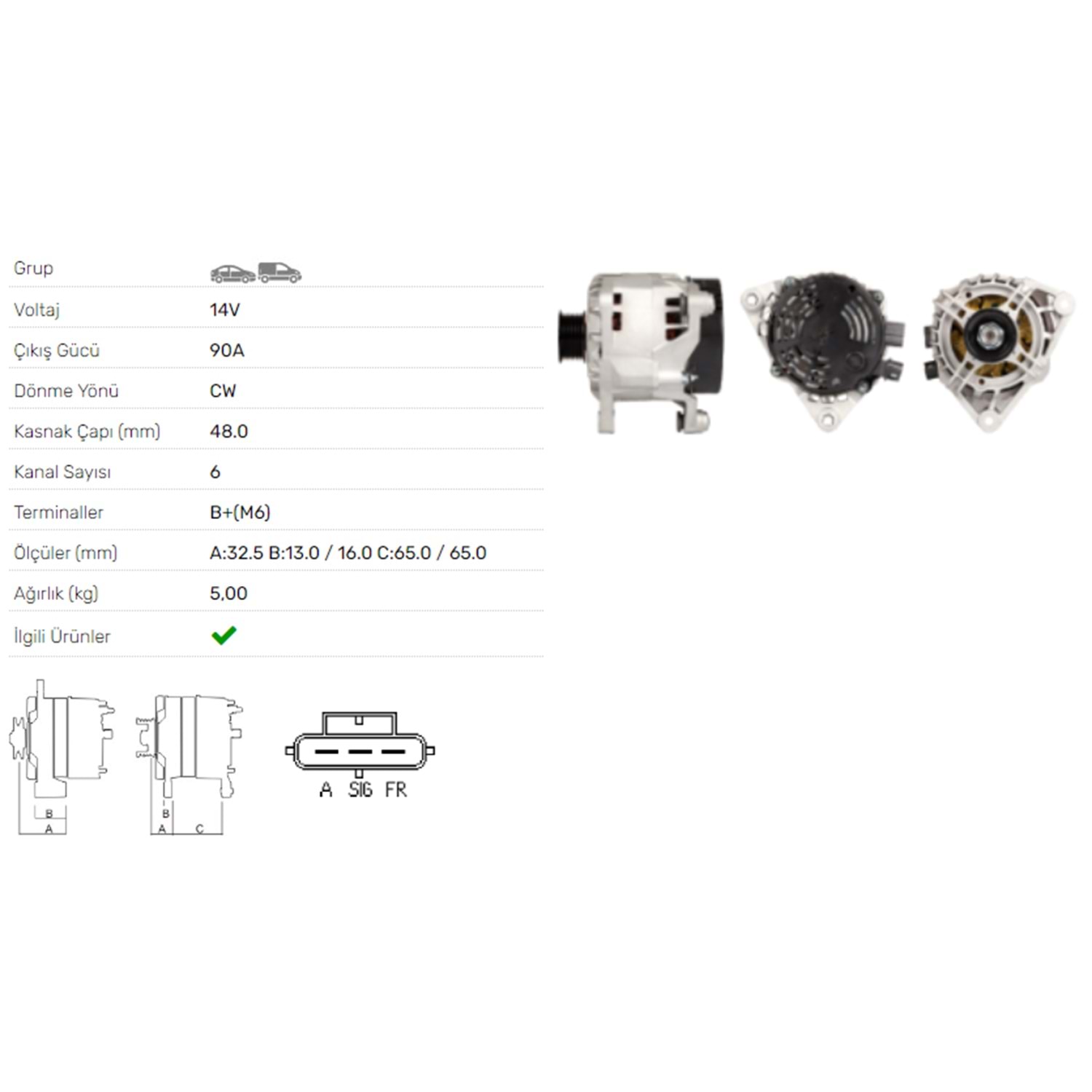 ALT DINAMO 14V 90A FORD FOCUS 1.8 2.0 RS ST170 ALT-4219