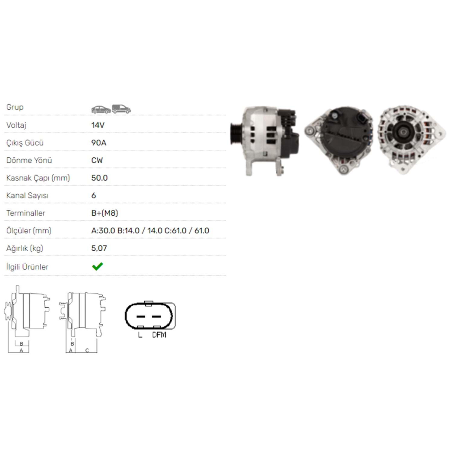 ALT DINAMO 14V 90A SEAT ALHAMBRA 2.0I AROSA 1.0 1,4 CORDOBA 1,2 1,4