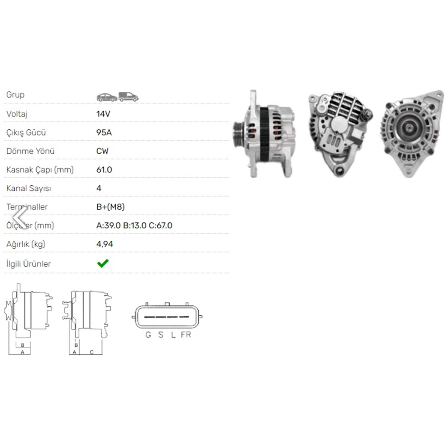 ALT DINAMO 14V 95A HYUNDAI SONATA III 2.0 16V KIA MAGENTIS