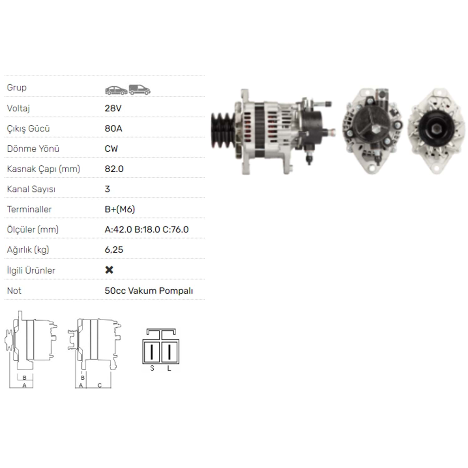 ALT DINAMO 24V 80A ISUZU OTOBUS