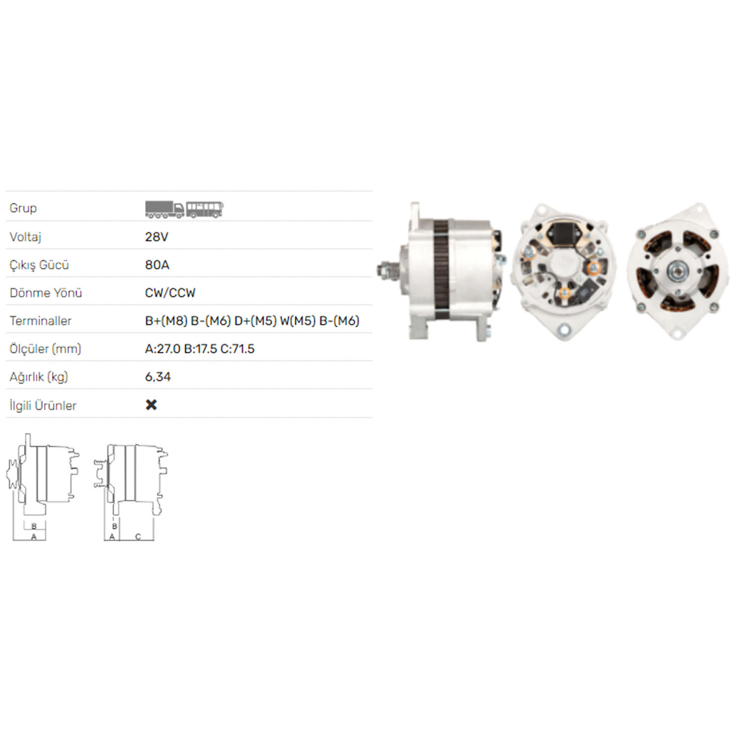 ALT DINAMO 24V 80A RENAULT PREMIUM MAGNUM MIDLUM KERAX