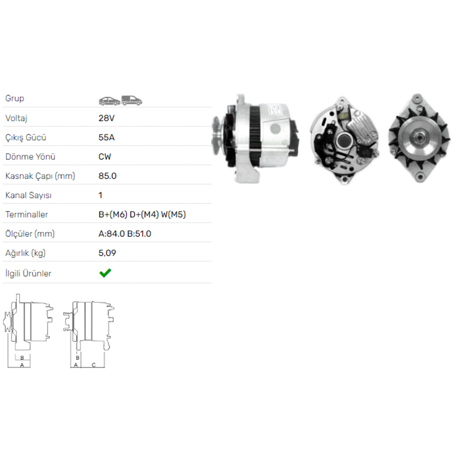ALT DINAMO A 127 55A BMC 24V.