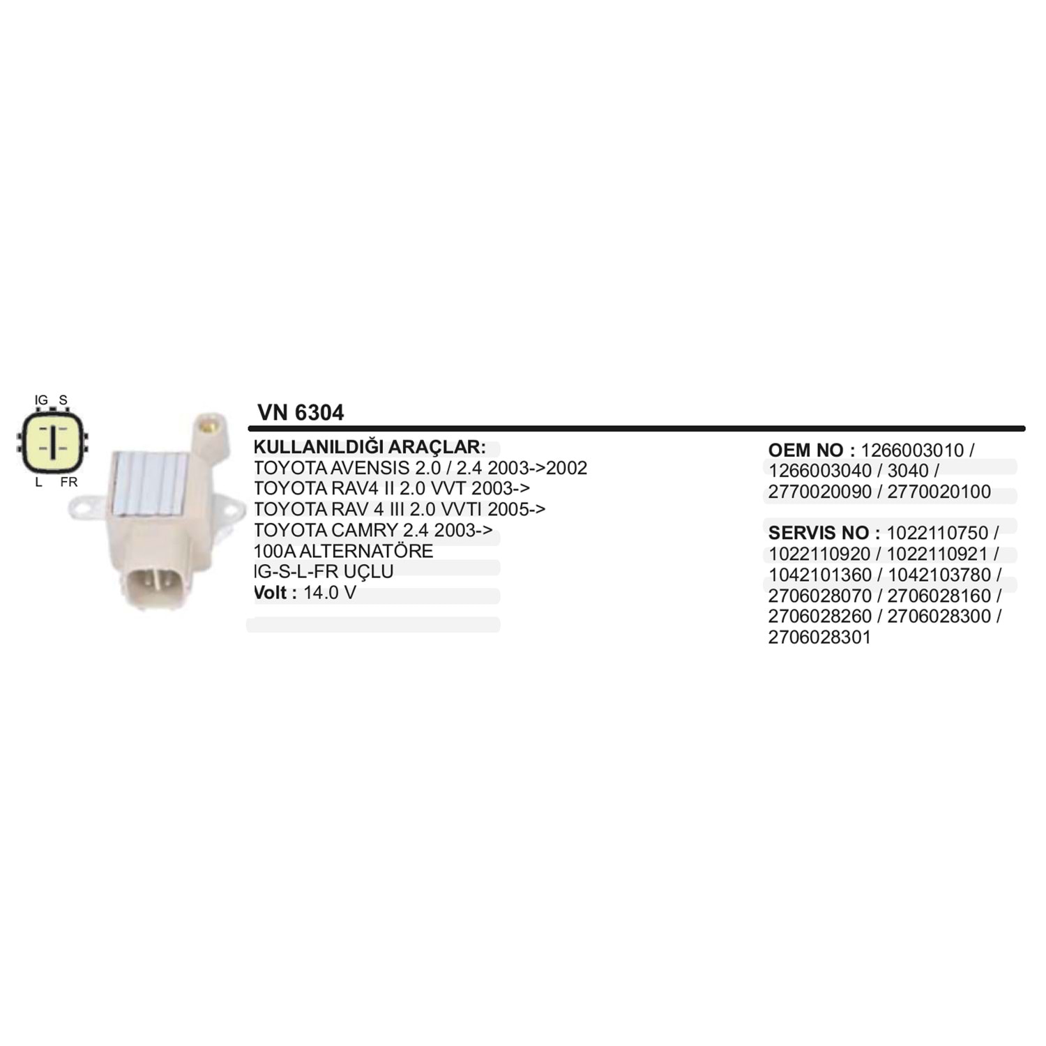ALT KONJEKTOR DENSO TOYOTA CAMRY RAV4 04>