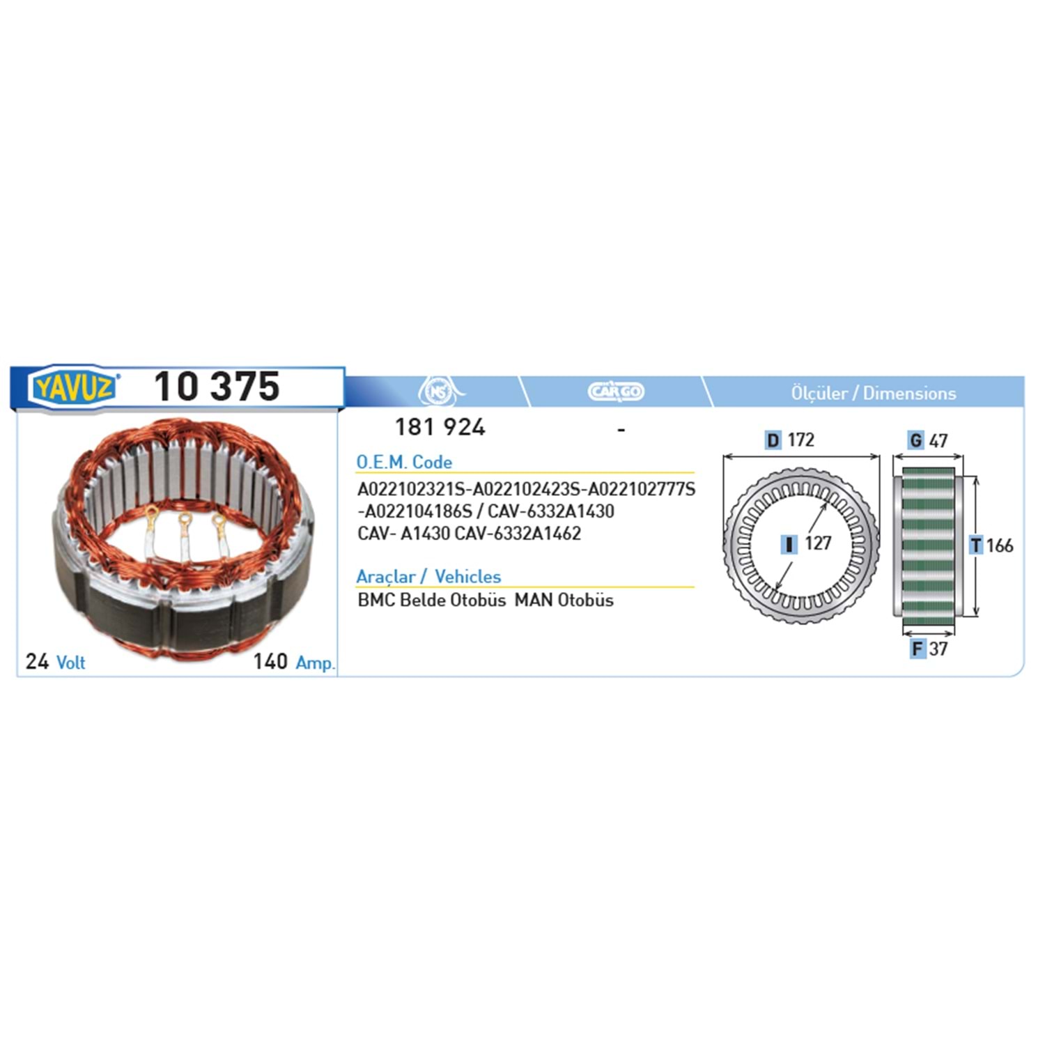 ALT STATOR 140AMP.BMC MAN OTOBUS