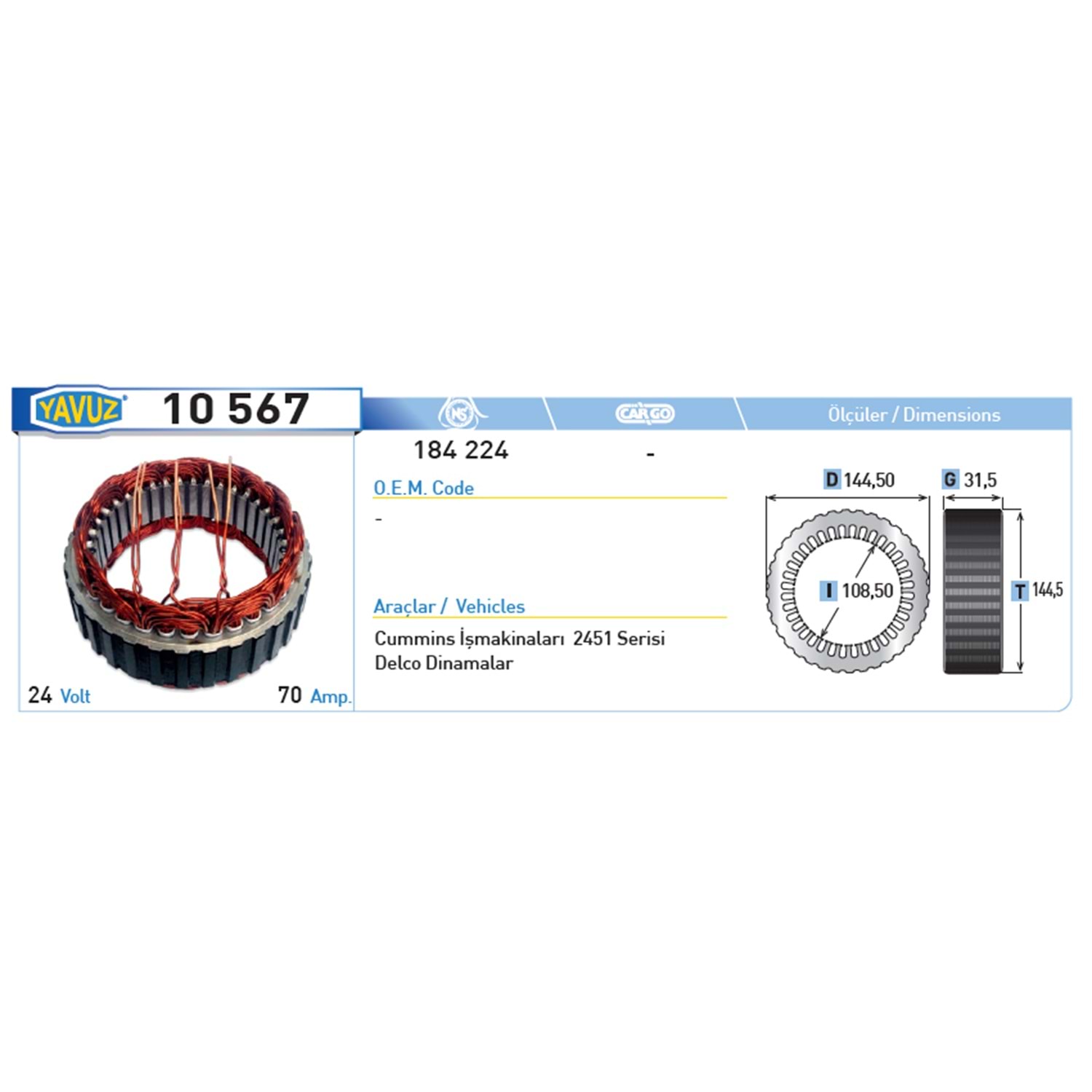 ALT STATOR CU MMINS IS MAKINASI 70AMP 24V