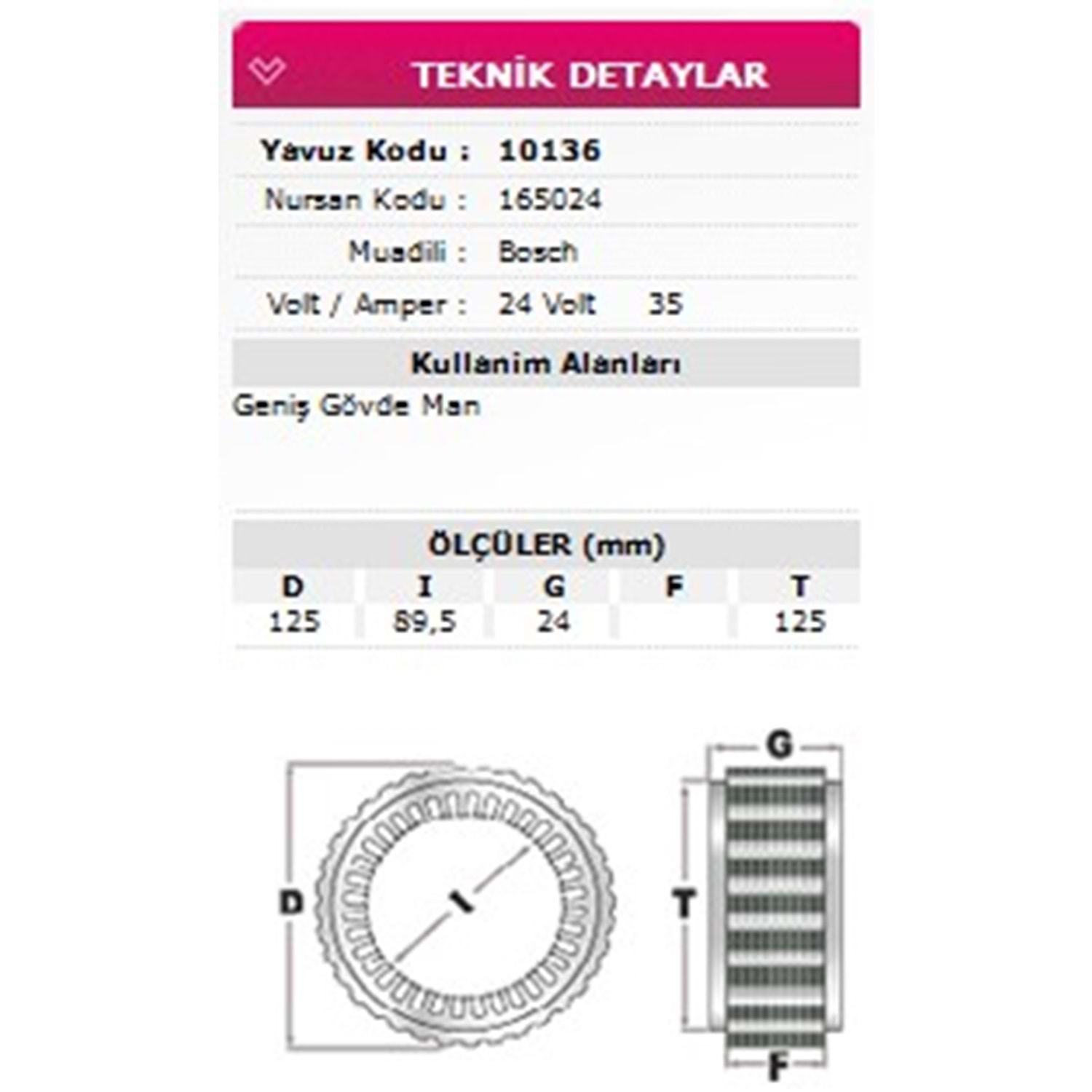 ALT STATOR GENIS GOVDE MAN 24V 35A 165024