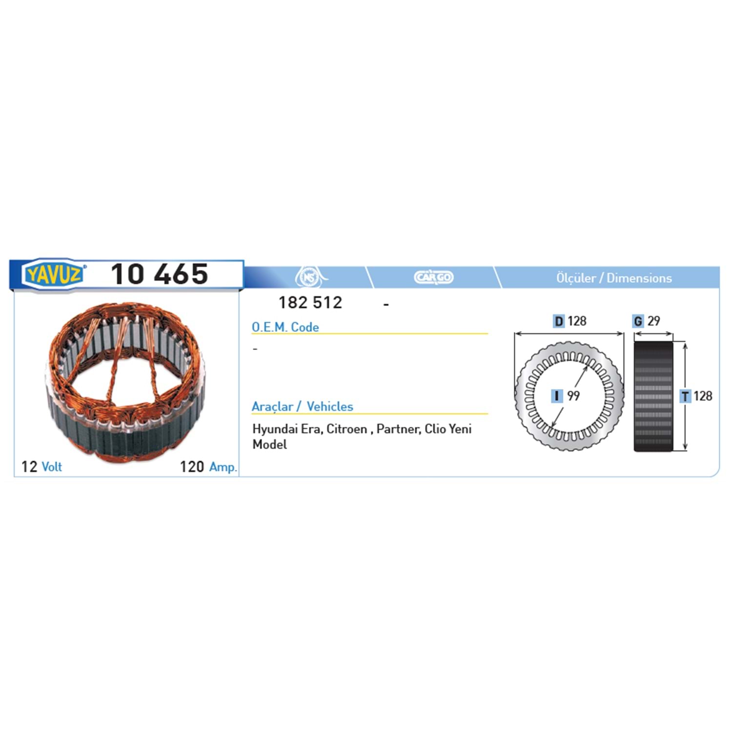 ALT STATOR HYUNDAI ERA CIRTOEN PARTNER 182512