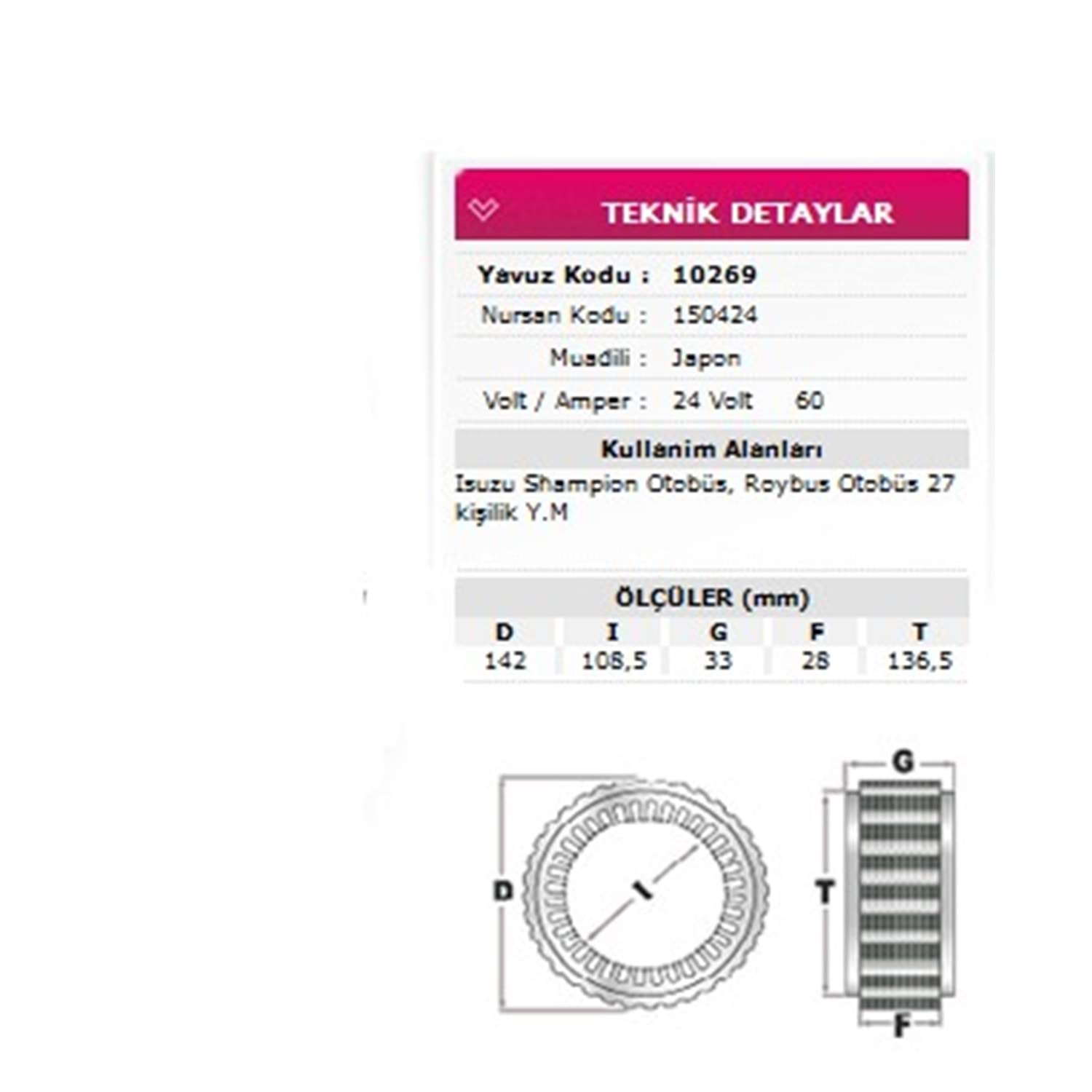 ALT STATOR ISUZU CHAMPION OTOBUS, ROYBUS OTOBUS YM 24V 60A 150424