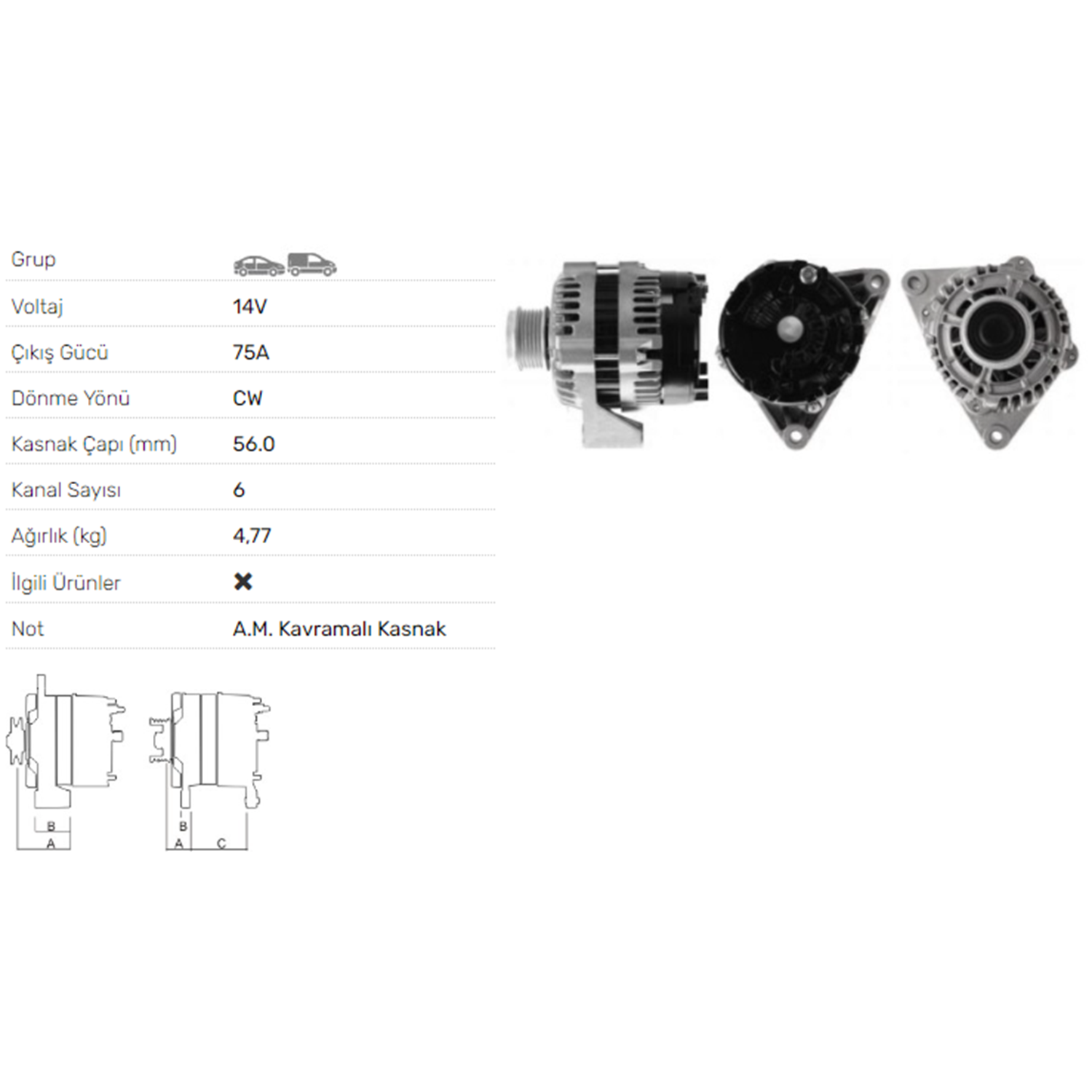 ALTERNATOR 14V 75A SSAYGYONG KORONDO II 2.9 TD