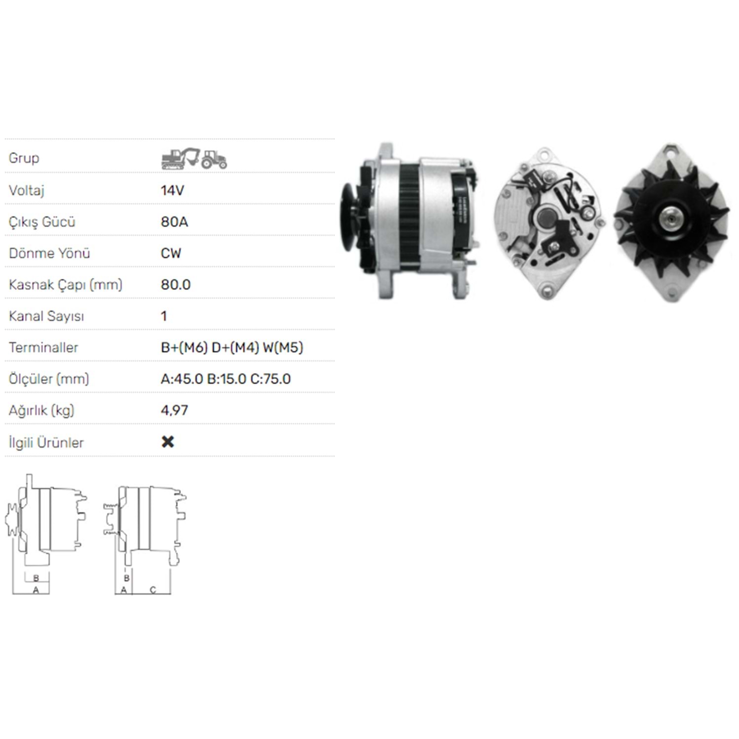 ALTERNATOR 14V 80A JCB 8085 TZS
