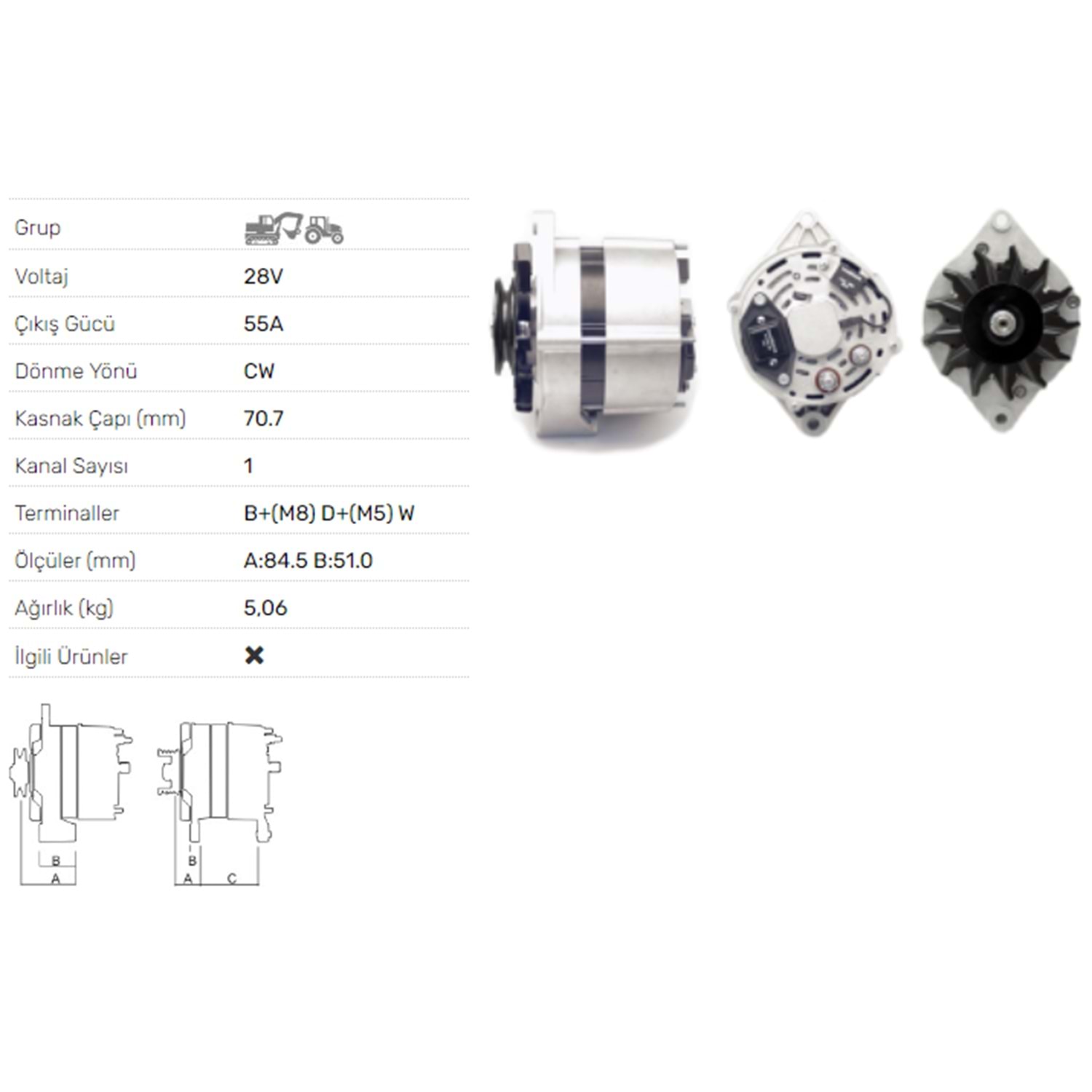 ALTERNATOR 28V 55A CUMMINS