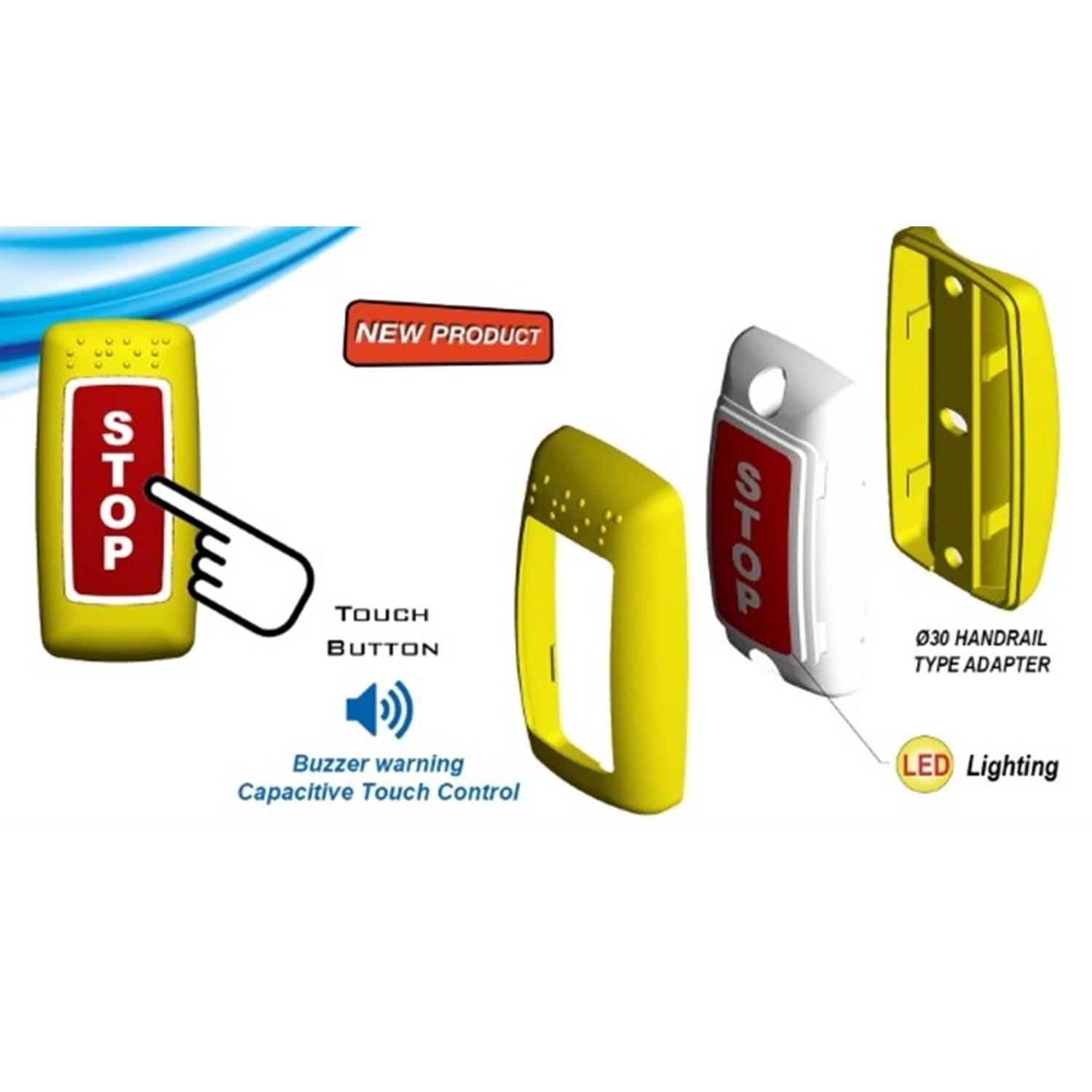 12/24V BORU TIPI SARI GOVDE STOP KIRMIZI SERIGRAFI DOKUNMATIK BUTON