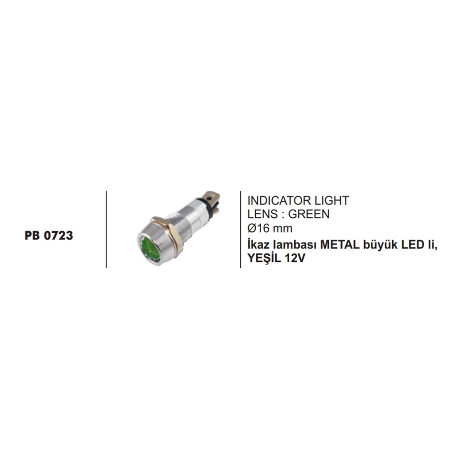 İKAZ LAMBASI METAL BÜYÜK LED Lİ YEŞİL 12V