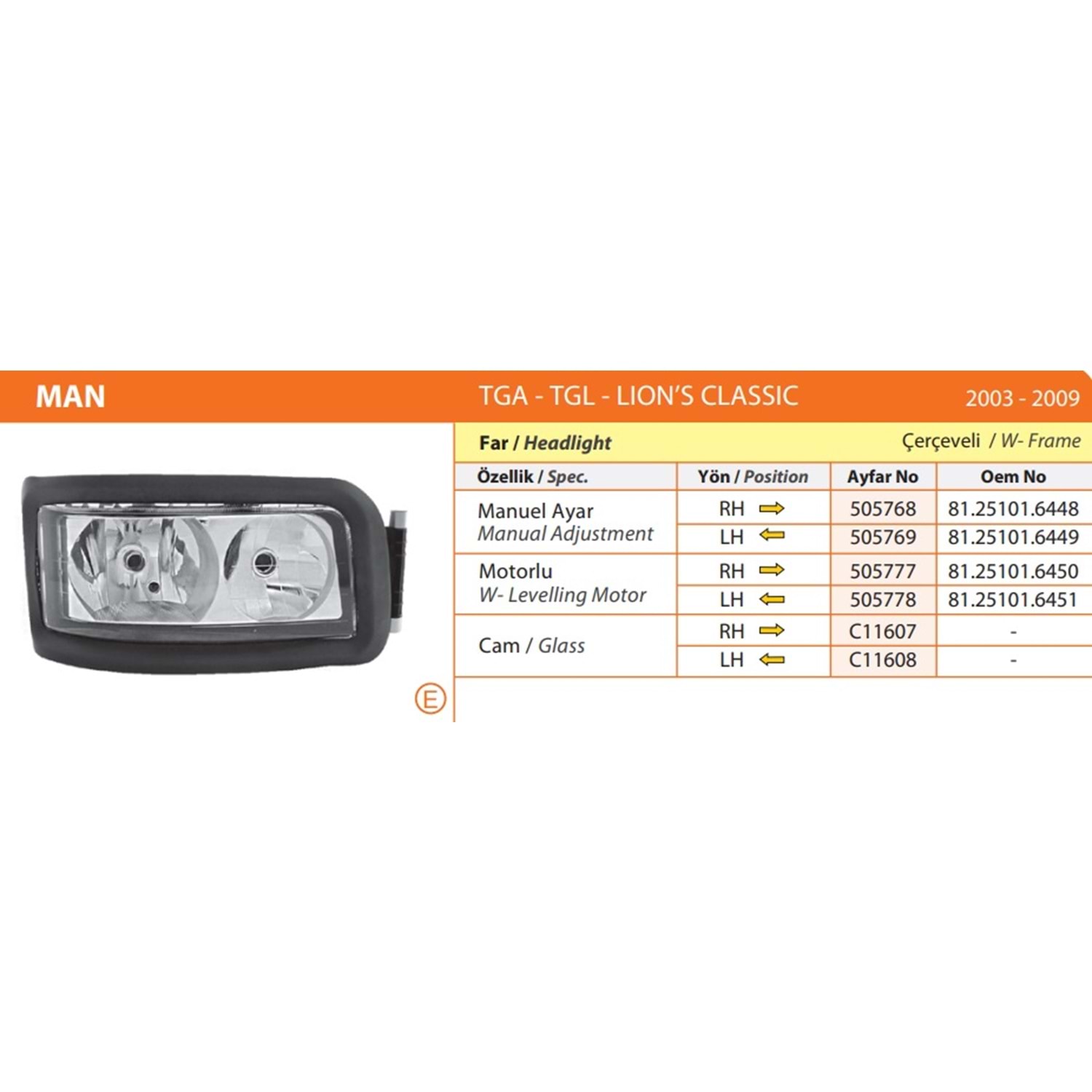 MAN TGA TGL LIONS CLASSIC CERCEVELI FAR SOL E4