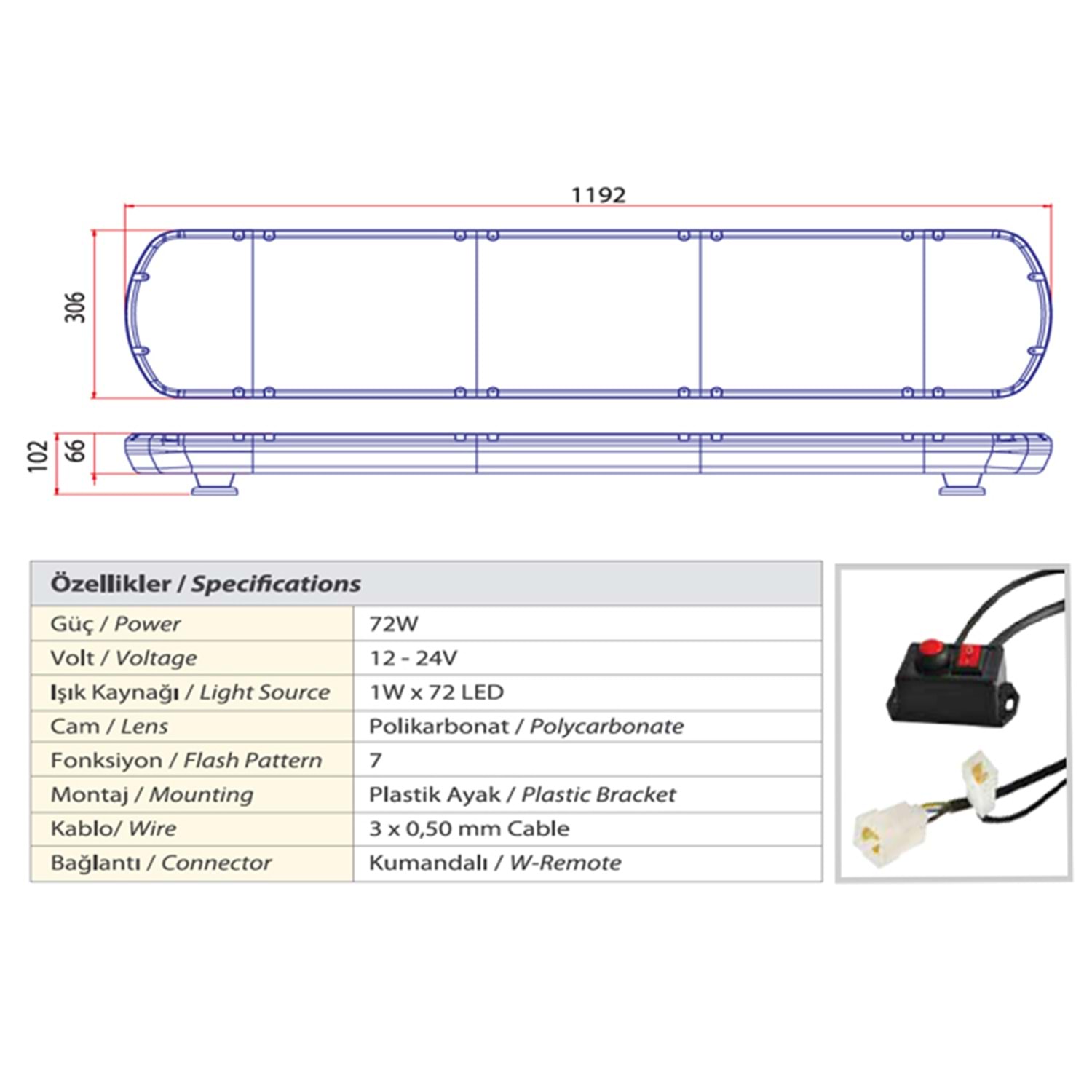TRAFIK IKAZ LAMBASI LED MAVI 119 CM