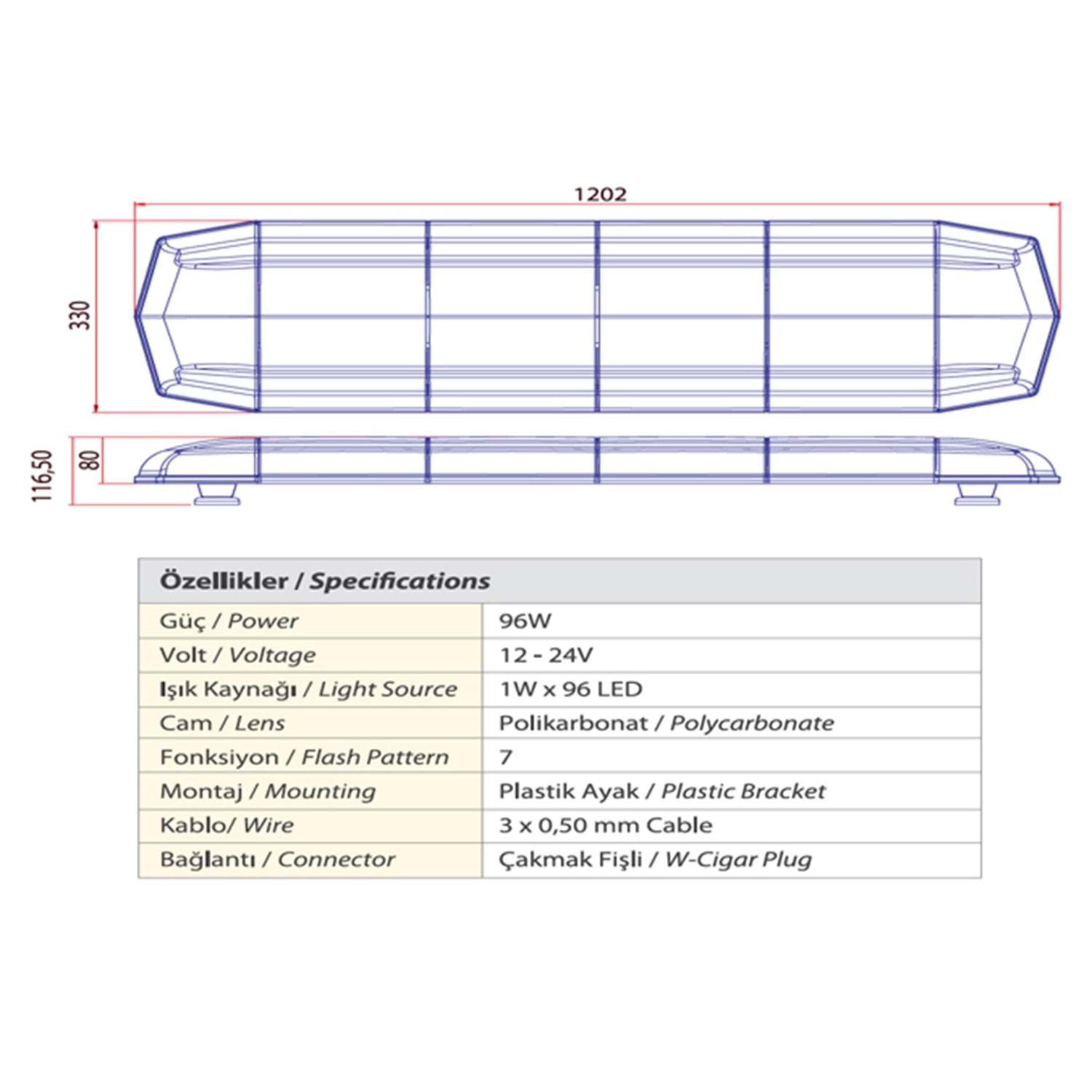 TRAFIK IKAZ LAMBASI LED MAVI KOMPLE SEFFAF