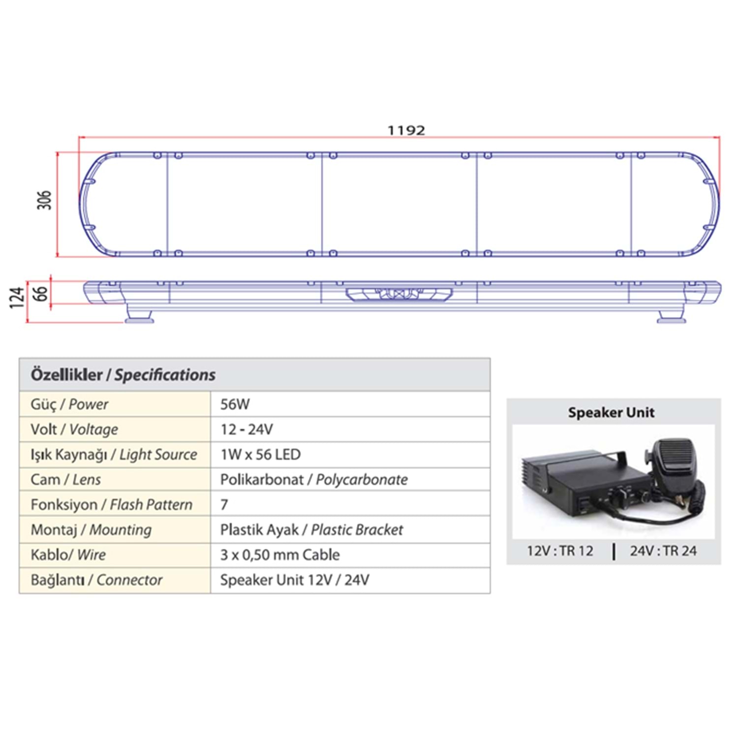 TRAFIK IKAZ LAMBASI LED SARI-KIRMIZI HOPARLORLU 119 CM