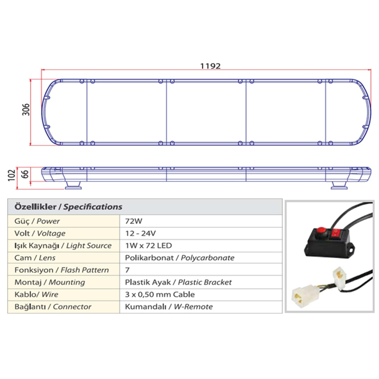 TRAFIK IKAZ LAMBASI LED SARI-KIRMIZI KOMPLE SEFFAF 119 CM