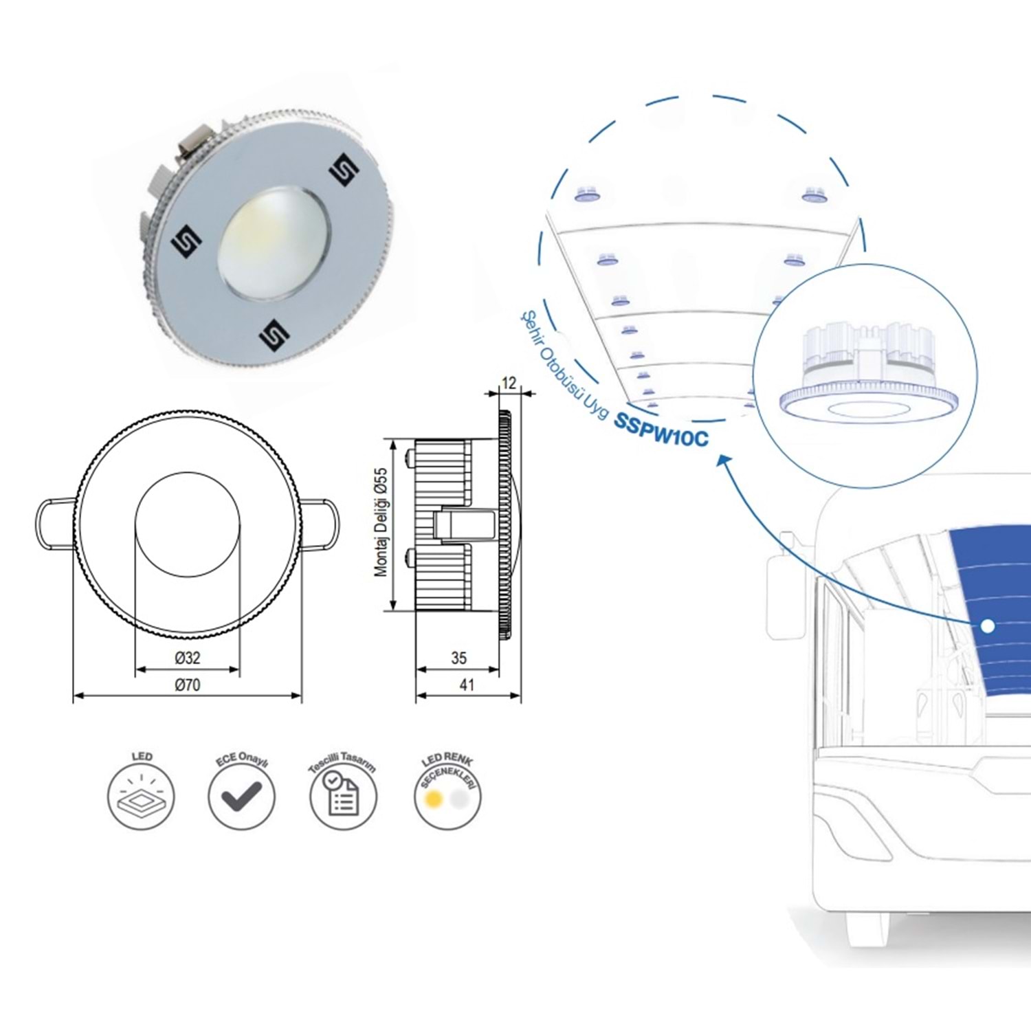 WHITE 12V 6 LEDLI AYDINLATMA