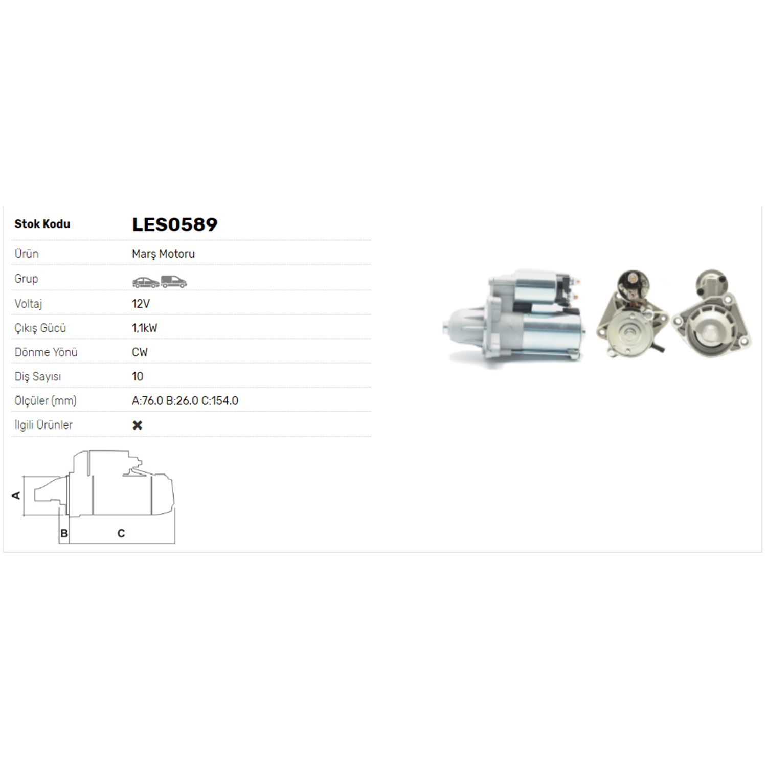 M.MOTORU 12V 1.1kW 10DİŞ FORD FIESTA,FOCUS,COURIER MAZDA-VOLVO
