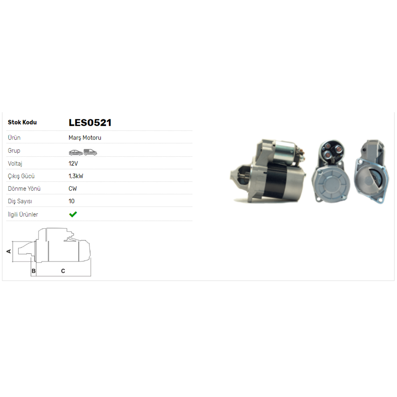 M.MOTORU 12V 1.3kW 10DİŞ MERCEDES BENZ A160 1.5, A180 1.7,A190 1.9,A200 2.0,A200 2.0 TURBO