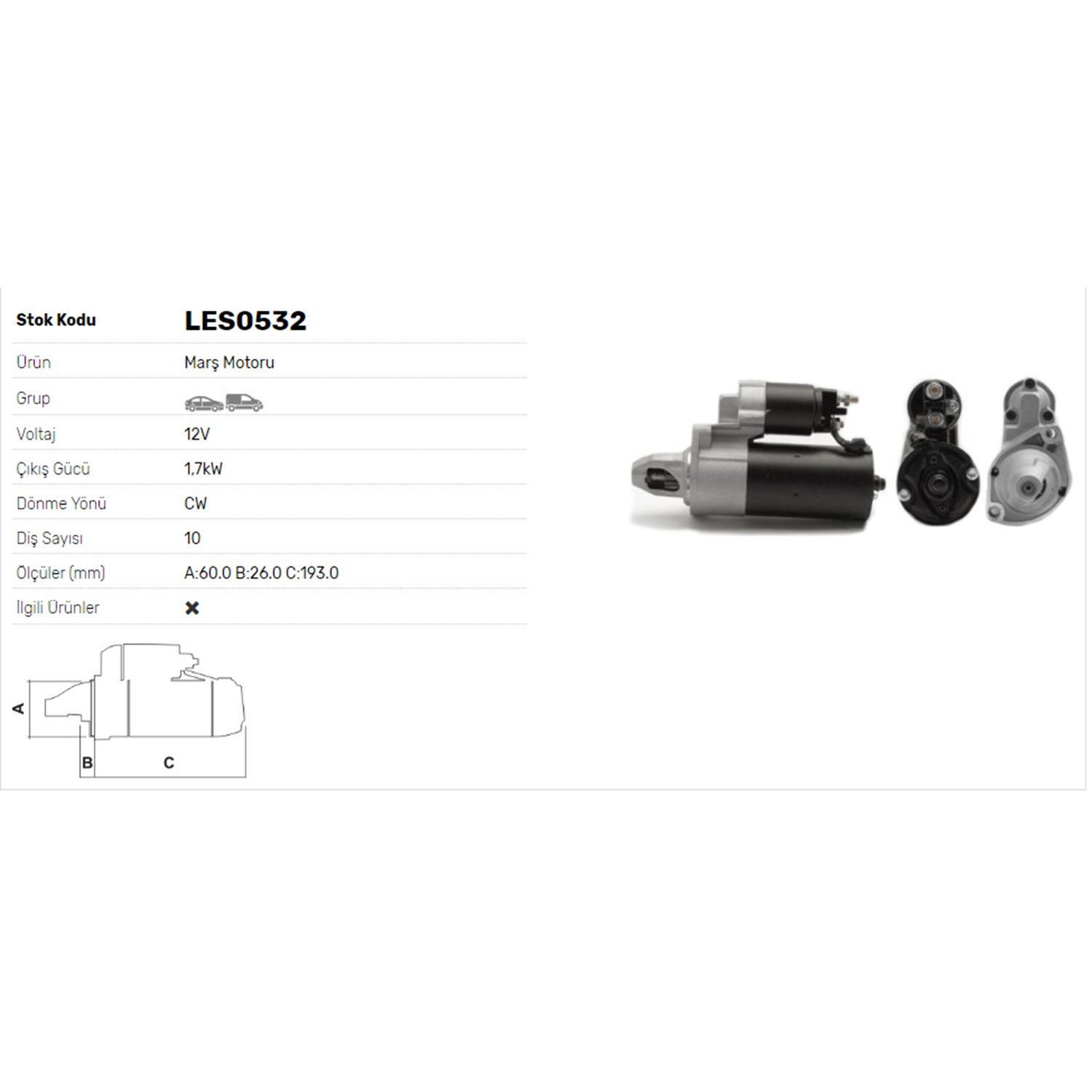 M.MOTORU 12V 1.8kW 10DİŞ CHRYSLER,JEEP,MERCEDES BENZ - SPRİNTER 09