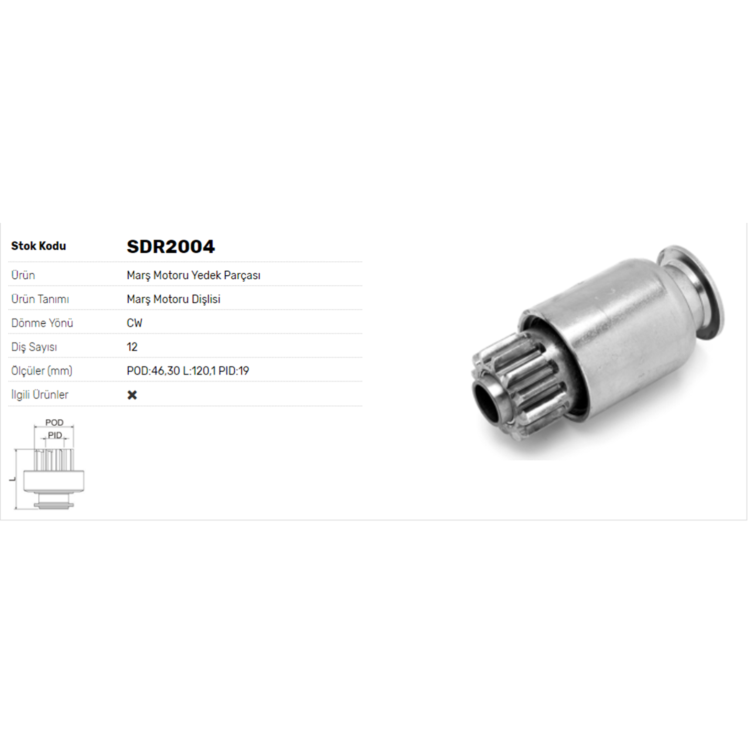 BOY 120,00 MM / KAFA ÇAPI 46,30 MM / İÇ ÇAPI 19,00 MM / KANAL 19 / 12 DİŞ